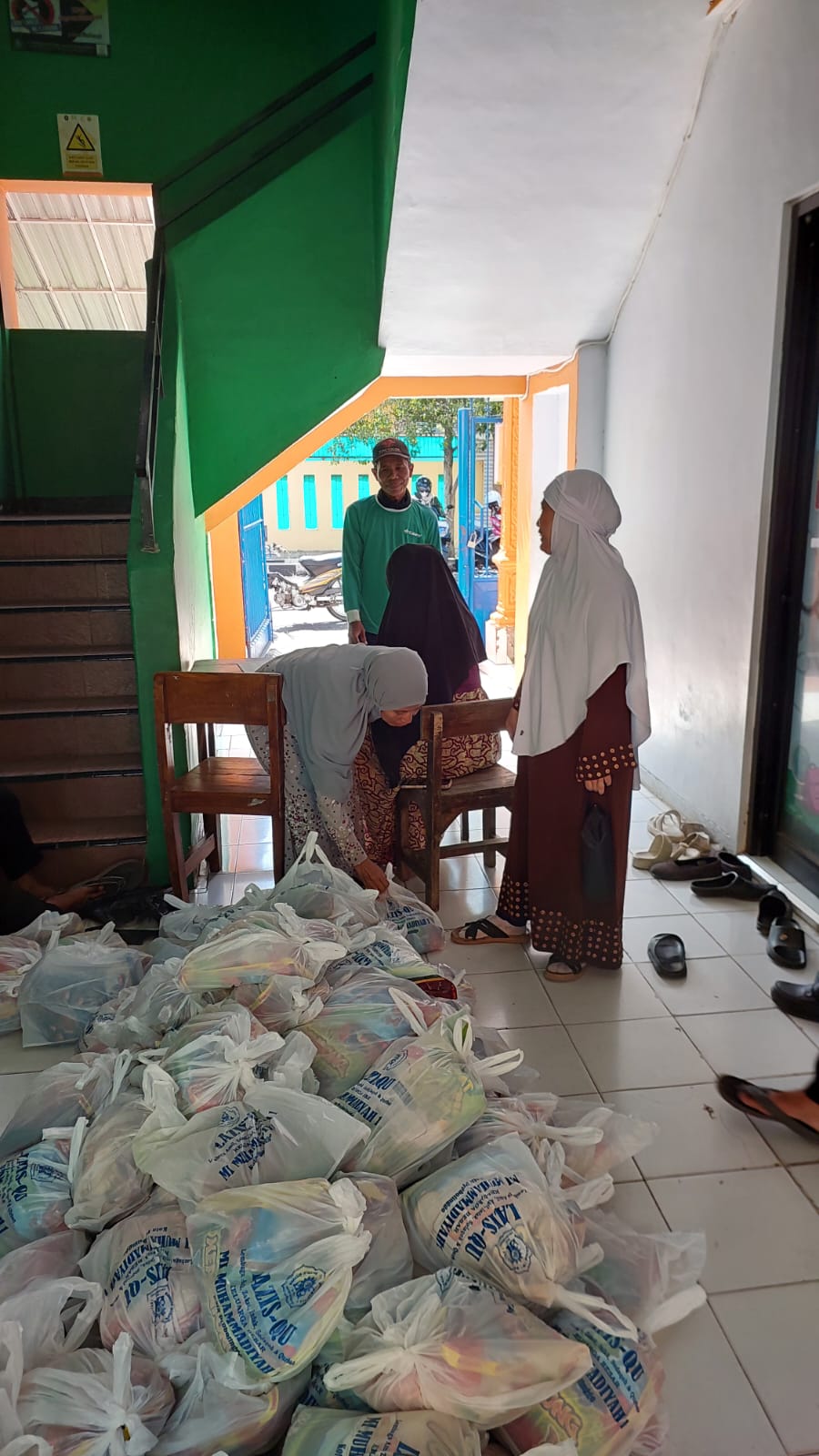 |Panitia zakat menyiapkan Zakat beras untuk penerima zakat|
